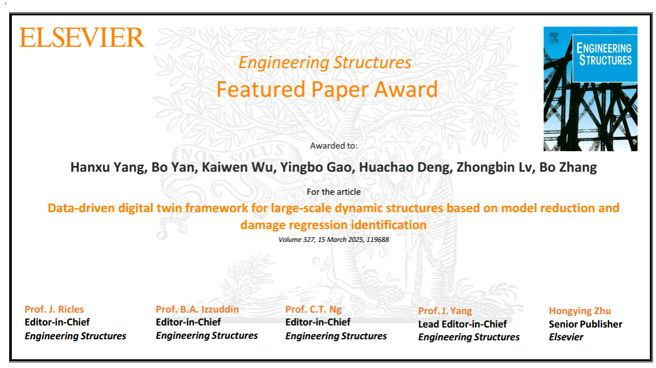 详情2025年8月5日,结构工程领域权威期刊Engineering Structures编辑部公布了该期刊最佳论文奖(Featured Paper Award)遴选结果。由av01 av01 杨寒旭博士、严波教授、吴楷文博士、高英博博士、邓华超副教授、国网河南电力科学研究院吕中宾总工、张博高工合作完成的发表于该期刊2025年第327卷的论文“Data-driven digital twin framework for large-scale dynamic structures based on model reduction and damage regre...