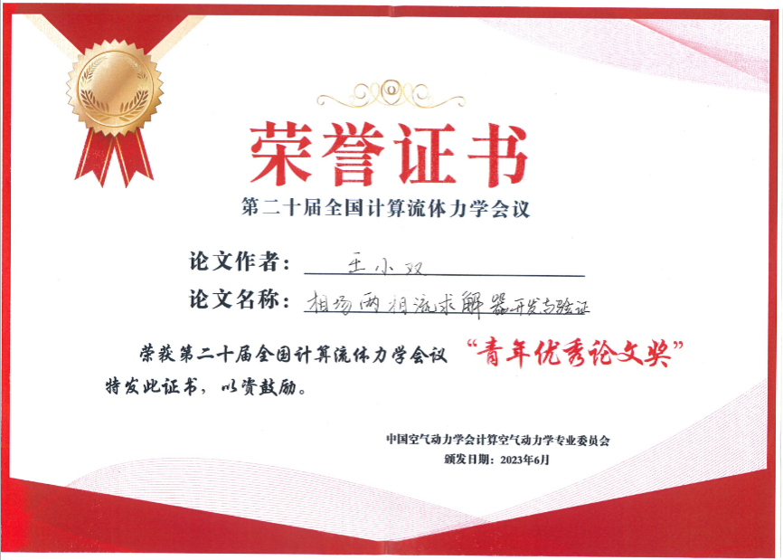 曾忠教授课题组2020级硕士生王小双会上做了题为《相场两相流求解器的开发与验证》的报告,并荣获多相流会场“青年优秀论文奖”。该报告介绍了课题组关于基于相场模型的高效、高精度两相流动有限体积方法最新研究进展:提出用相场模型描述相界面运动,应用基于WENO格式的有限体积方法求解守恒形式的Navier-Stokes-Cahn-Hilliard系统,并设计了一致性的质量通量以保证界面区域质量、动量输运的守恒性;基于投影算法解耦求解不可压Navier-Stokes方程,并采用RC插值技术有效避免了压力震荡;我们应用多种单相、两相测试算例充分验证了新提出的两相流动算法的精度和效率。相关工作得到了国家自然科学基金和重庆市科技局项目的资助。
