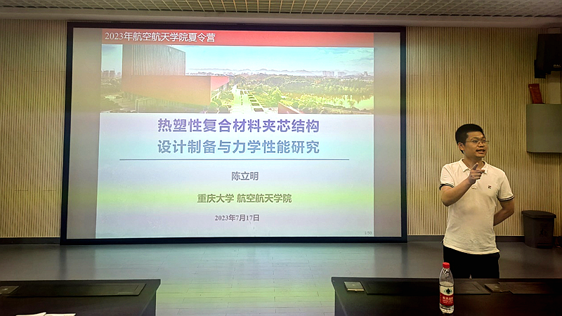 17日下午,为更加全面地让同学们了解学院科研方向、领略教师风采,学院为各位营员安排了5位老师作学术报告。李卫国教授以“力热能量密度等效原理及其应用”为主题,介绍了团队的研究成果,与同学们分享了科学研究的乐趣;龚愉副教授阐述了渐进损伤分析方法研究进展及其在复合材料结构分析中的应用;张亮教授以柔性张拉整体与充气薄膜结构计算力学初探为题介绍了相关研究进展;黄培副教授介绍了树脂基复合材料及其在航空航天中的应用;陈立明教授则以生动的研究案例为同学们介绍了热塑性复合材料夹芯结构设计制备与力学性能研究。各位老师的精彩报告加深了同学们对学院相关研究领域的了解,展示了学院特色研究成果。