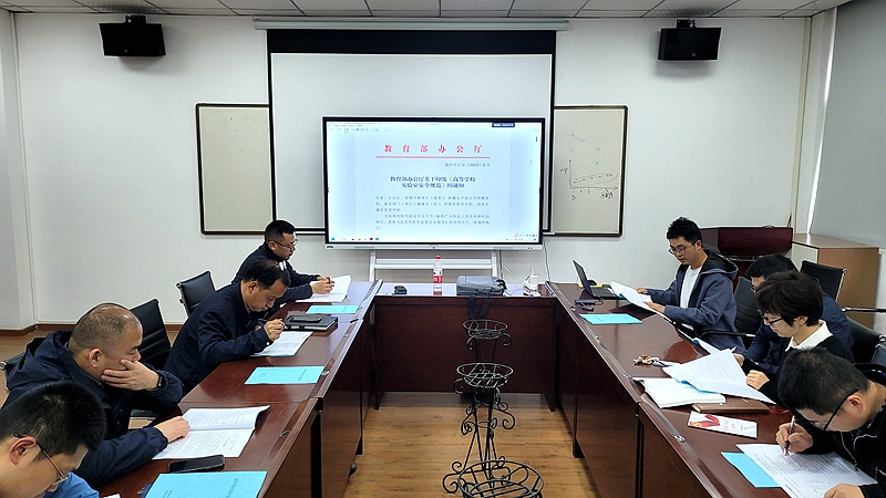 召开教师大会,专题学习教育部办公厅2023年2月8日印发的《高等学校实验室安全规范》。学院党委书记万玲,副院长(主持工作)李卫国,党委副书记程乐,实验中心主任、副院长刘占芳,工会主席尹德强,实验中心副主任魏榛、刘浩,学院全体使用实验室的教师参加会议。