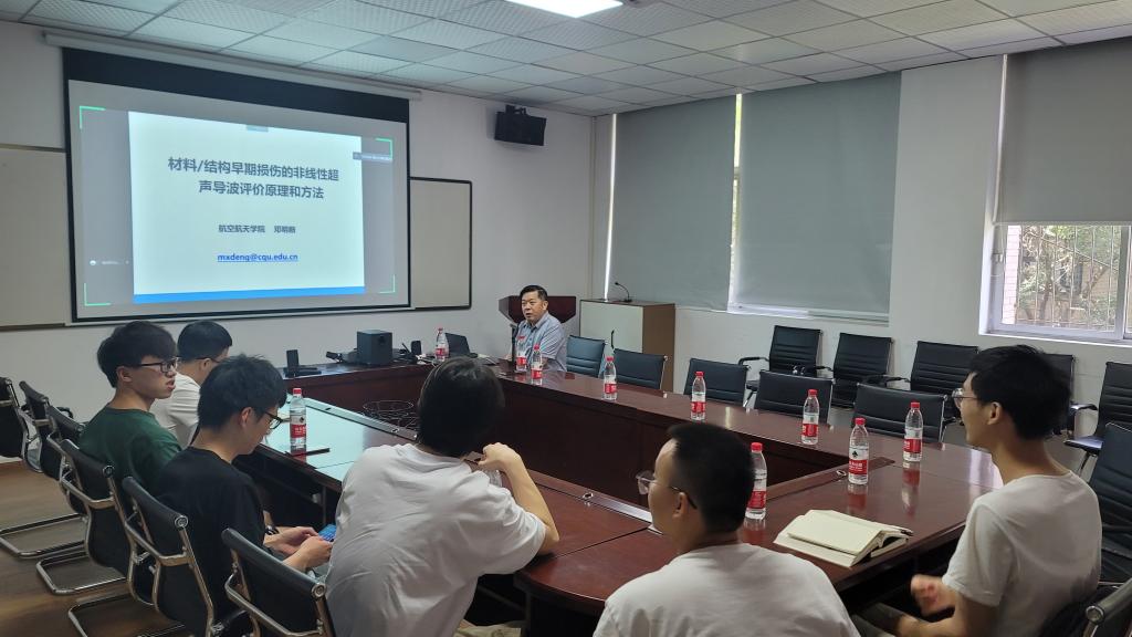 为更加全面地让同学们了解学院科研方向、领略教师风采,学院为各位营员安排了5位教师作研究报告,并设立了线上和线下同步会场。李卫国教授以“力热能量密度等效原理及其拓展应用”为主题,介绍了团队的研究成果;邓明晰教授阐述了材料/结构早期损伤的非线性声导波评价原理和方法;李元庆教授以树脂基复合材料在航空航天中的应用为题介绍了相关研究进展;吴剑副教授介绍了固-液复合材料等效杨氏弹性模量的相关研究情况;张元勋副教授则以生动的案例为同学们呈现了“嫦娥四号”生物科普载荷的研究历程。各位老师的精彩报告让同学们对学院的各专业研究方向有了全面的了解,展示了学院不同专业的特色成果。