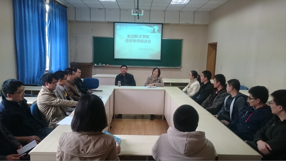 针对工作中遇到的问题和困难,大家也纷纷建言献策:章俊老师建议增加学院学术报告的数量,表示自己将每一场都去听;李期斌老师和叶伟老师目前在A区七教办公,,他们希望学校统筹安排整合学院教师科研办公地点,以有利于教师间的学术交流以及提升教师归属感;张亮、宁慧铭和张元勋三位老师号召大家在紧张的教学科研工作之余加入学院篮球队,多锻炼身体,注重身心健康,同时,张元勋老师表示希望学院给予青年教师更多的公共服务性工作;黎蕾蕾老师从自己的专业出发,在学院的课程设置上提出建议;刚入职不久的李元庆老师则希望学院参照国外高校的“Orientation”制度,进一步加大对新进教职工的培训以便大家尽快熟悉环境;孙东阳老师从院企合作的角度着眼,表示加强与行业内的合作能提高学院在航空航天领域的影响……