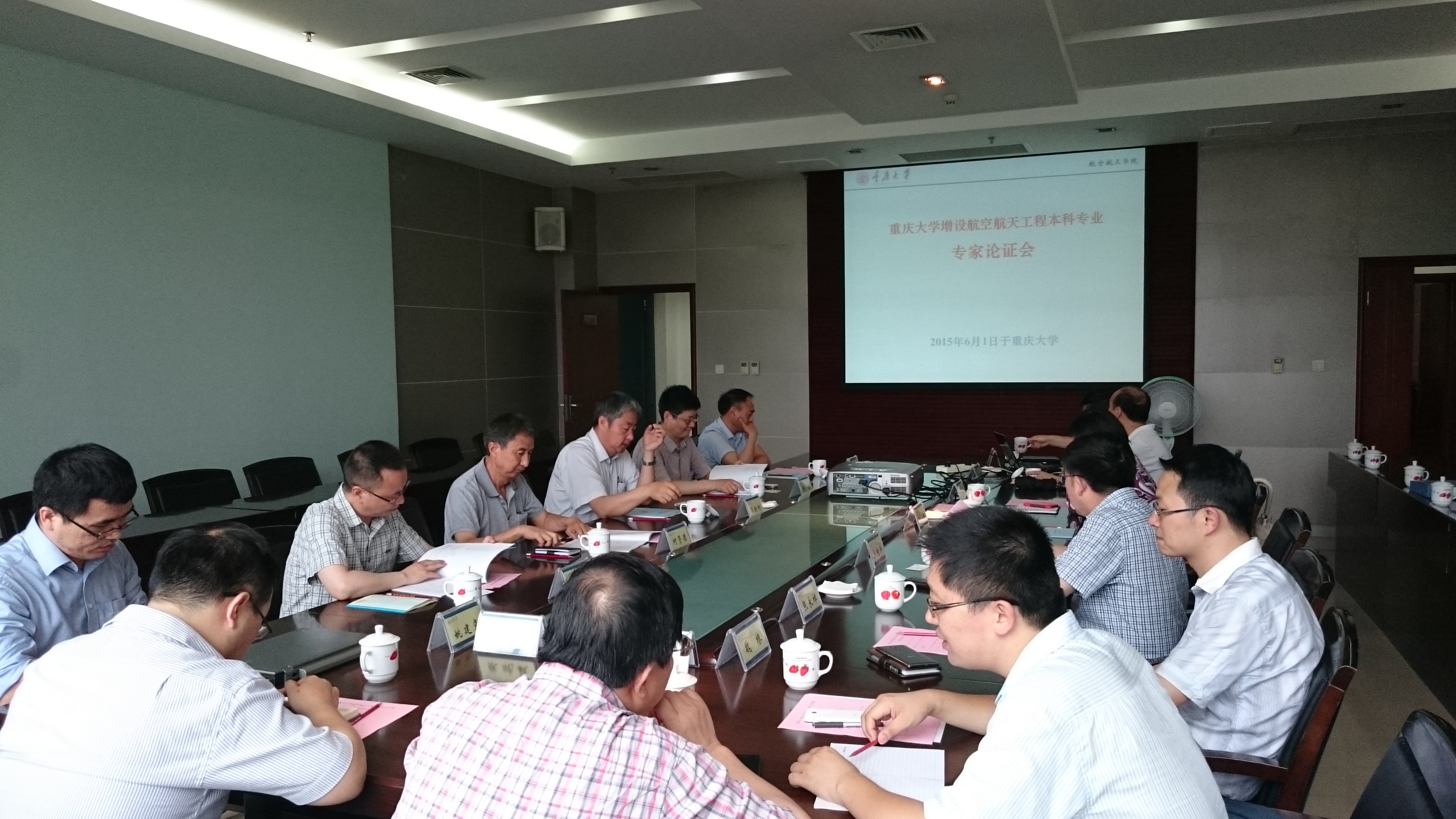 航空航天工程本科专业申报专家论证会。由清华大学梁新刚教授、北京航空航天大学杨超教授、中航贵州飞机有限责任公司柯贤德研究员、中国燃气涡轮研究院黄顺洲研究员和中航成都飞机设计研究所文立红研究员组成的论证专家组经过近两个小时的热烈讨论,最后形成了论证意见,认为av01