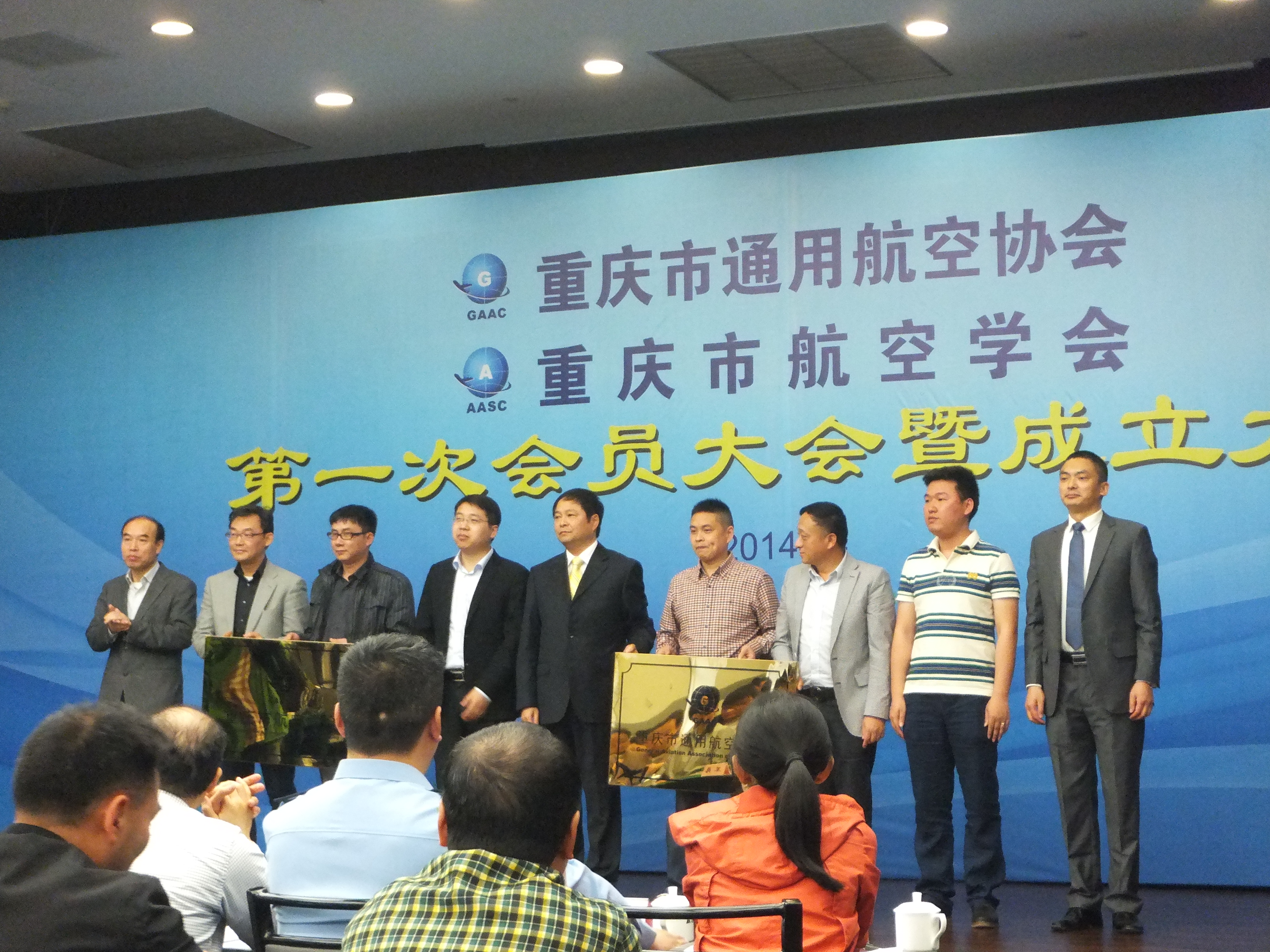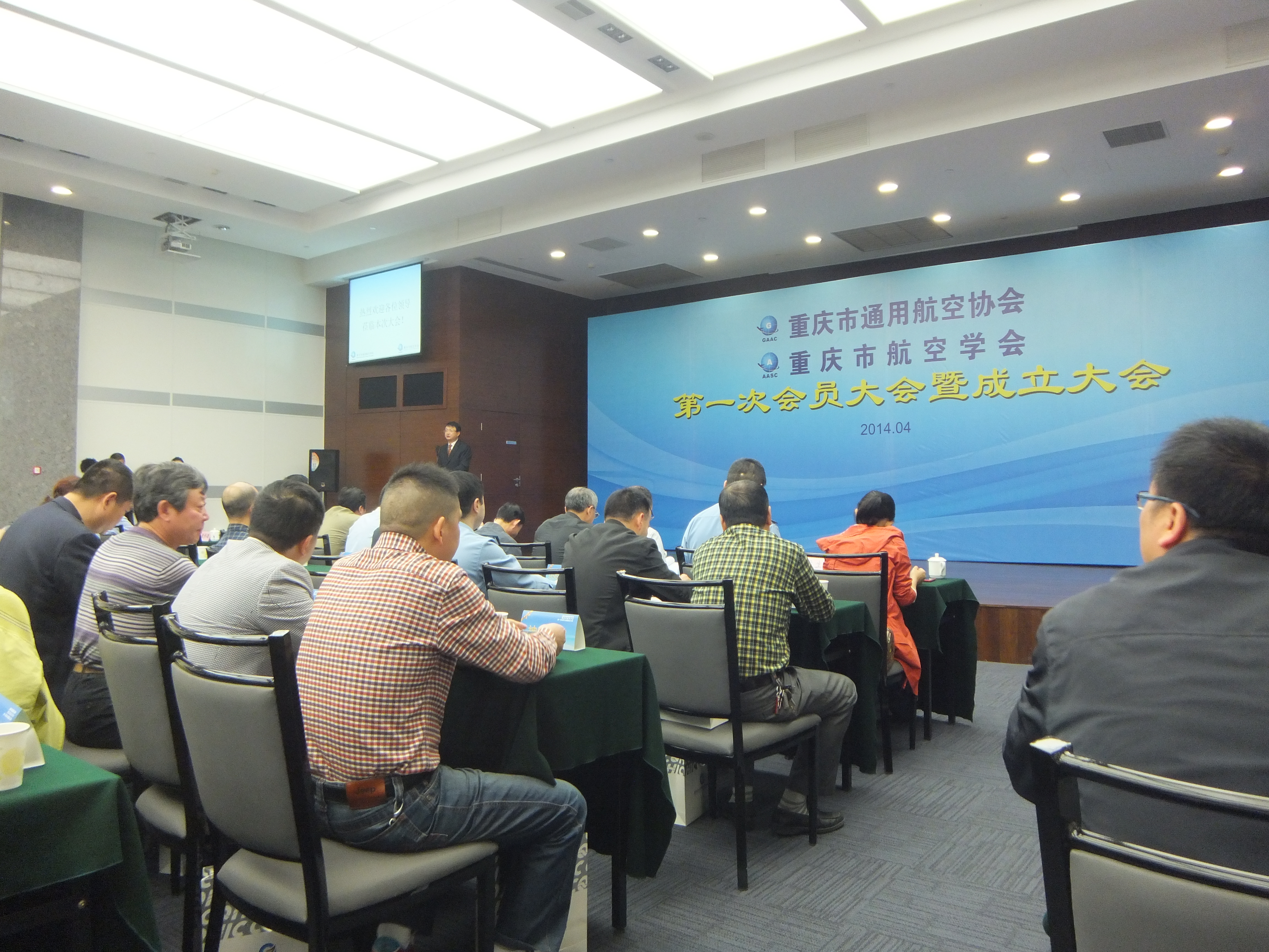 2014年4月30日上午9:30,“重庆市通用航空协会”和“重庆市航空学会”第一届会员大会暨成立大会在机电集团大厦二楼会议室隆重召开。协会和学会均是由重庆直升机产业投资有限公司牵头发起设立的。来自重庆地区的重庆两江航空产业投资集团、重庆通用航空公司、av01