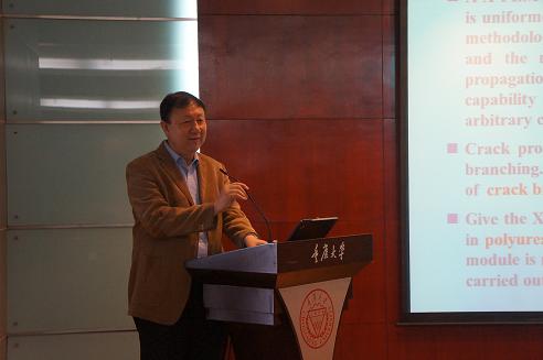 庄茁教授作了题为《基于断裂的扩展有限元(X-FEM)及在连续体壳、裂纹分叉、复合材料的应用》的学术报告。他首先对自己当年在av01