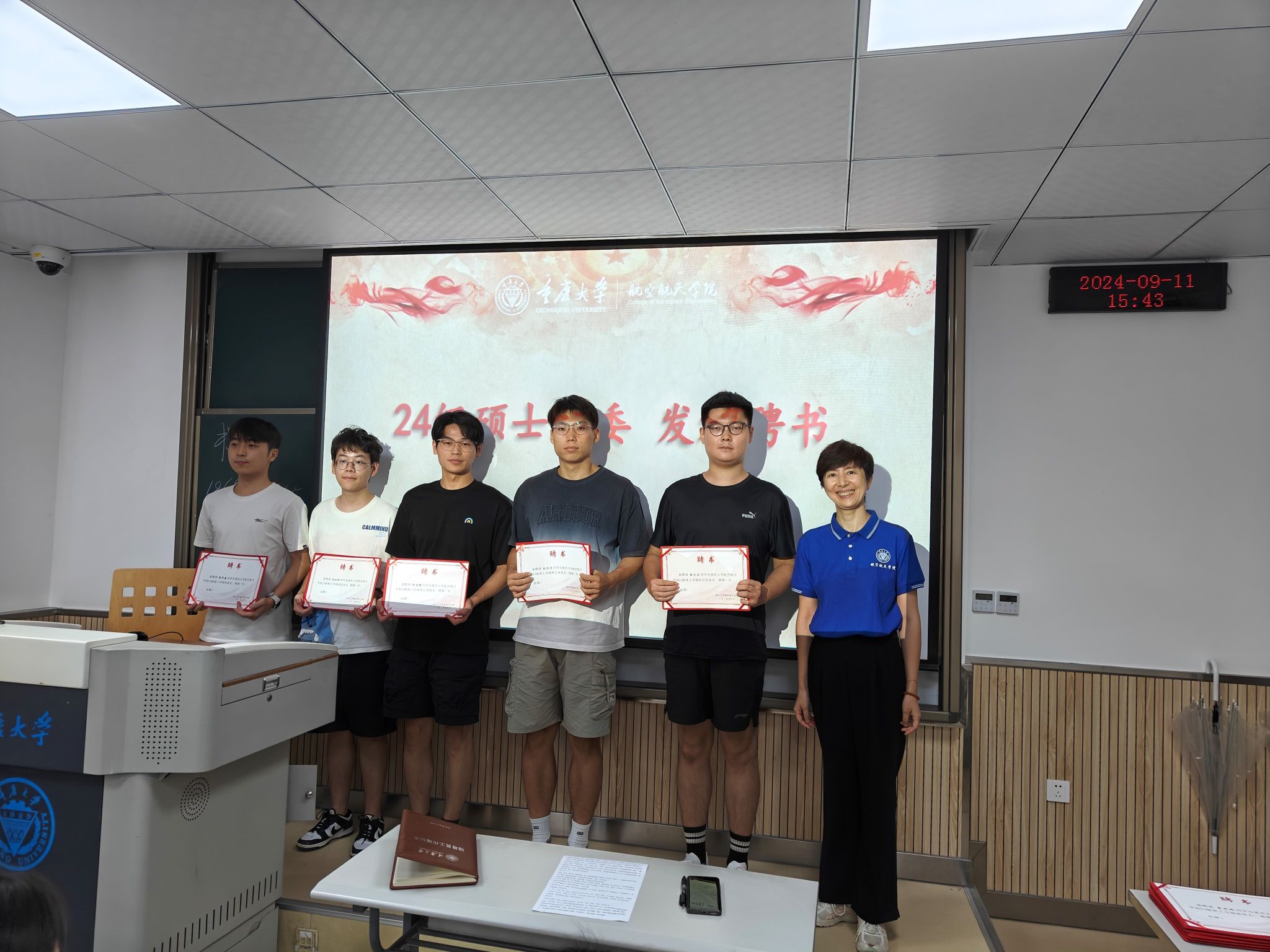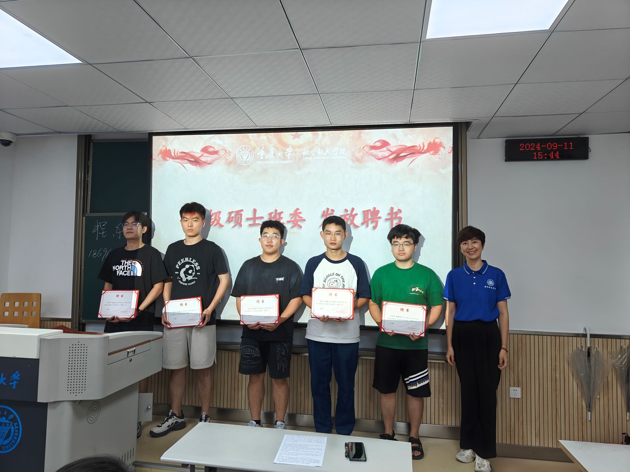 紧接着,程乐为2024级硕士班班委颁发聘书;伍丹、陈勇凡就学院党组织和团组织的工作进行了介绍,解答同学们对入党入团相关问题和疑惑;李蔚强调了保密工作的重要性,并介绍学生应当如何做好保密工作;尹瑞森对实验室安全工作进行了重点强调,并现场发放《av01