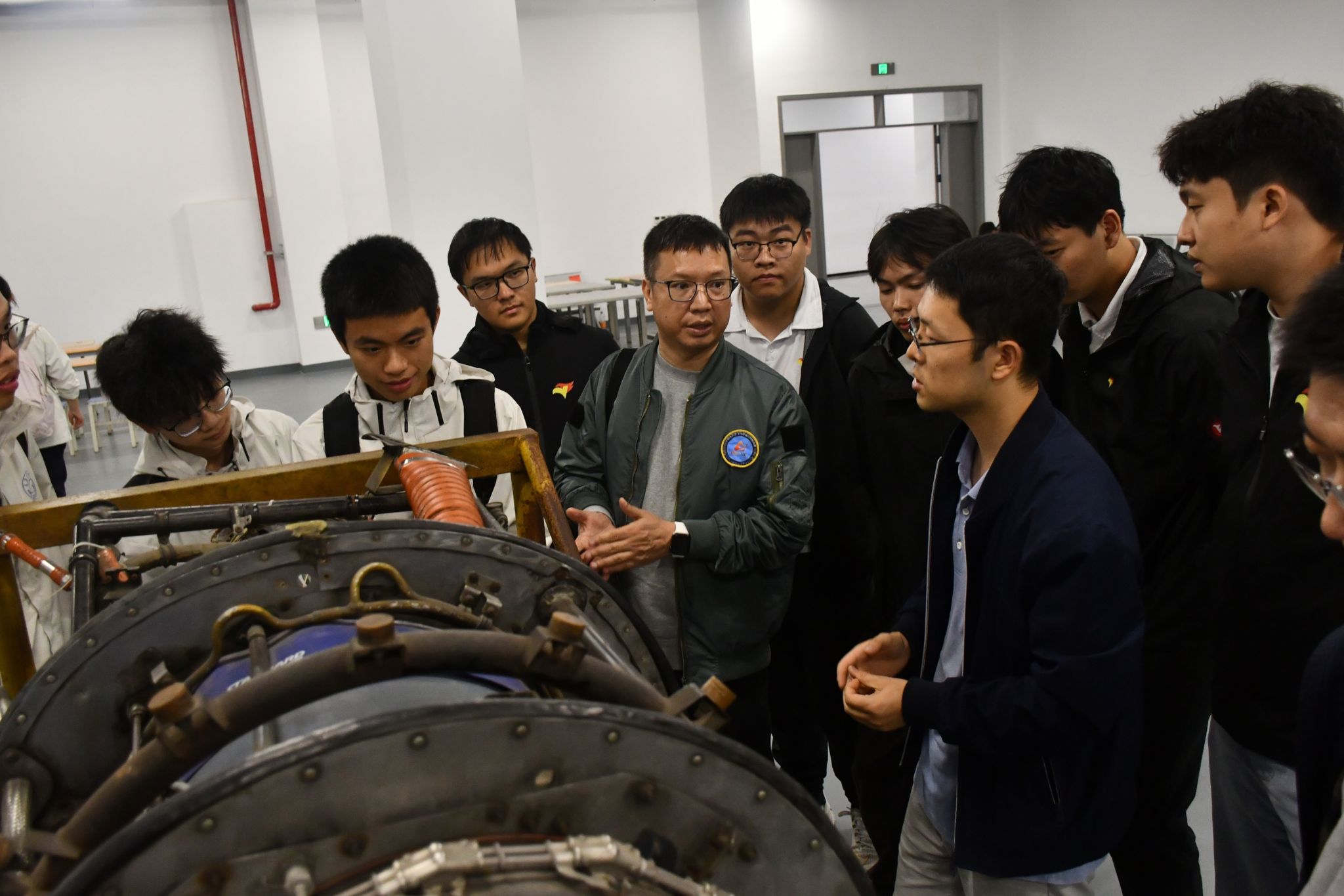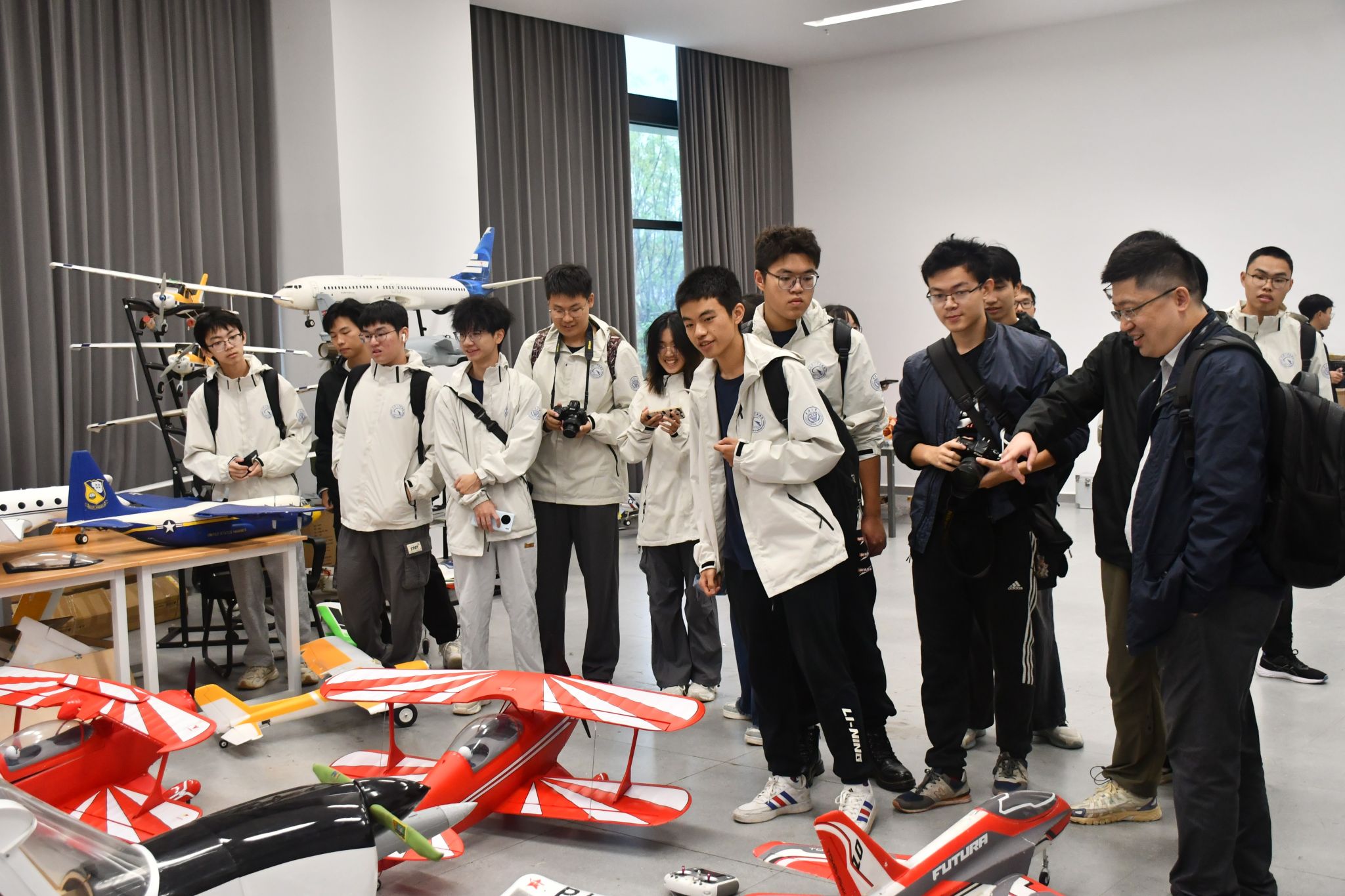 航模队一行乘校园巴士观光该校新建的天府校区校园,之后,一行人前往工程技术训练中心进行参观。在这里,中飞院老师详细介绍了飞机机务维修执照培训与考证的相关情况,中飞院航模协会带来精彩的室内无人机编队飞行表演,并在该校C区操场进行了航模飞行技术交流与表演。