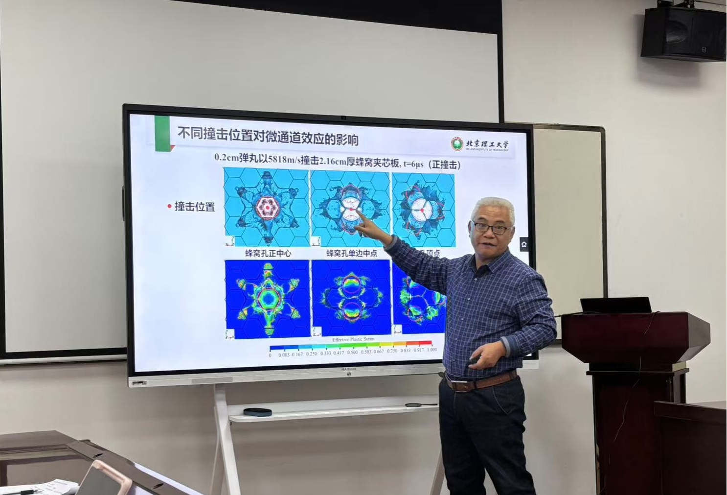 ,并于理科楼205会议室出席由工程学部主办的工程科学前沿讲坛,作了题为“弹丸超高速碰撞撞击蜂窝夹芯板产生碎片云的现象和机理”的报告。报告由 av01