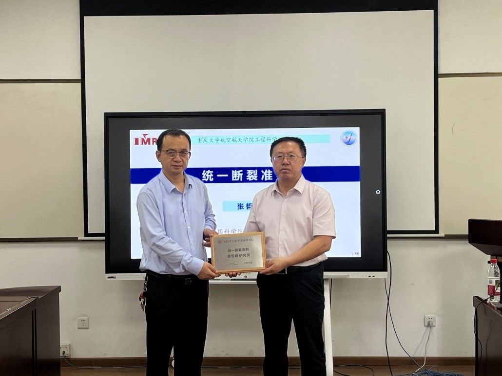 报告结束后,张哲峰研究员与现场师生就金属玻璃材料应用前景、断裂准则的工程化验证等问题展开深入讨论。随后,李卫国代表工程学部向张哲峰赠送了工程科学前沿讲坛纪念牌。工程科学前沿讲坛系列讲座为全校师生搭建了学术探讨平台,创造了与业内知名专家学者交流学习的机会,开阔了师生的学术视野,取得了持续的良好反响。