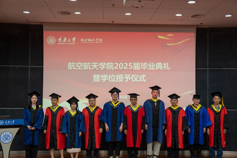副院长曾忠代表学院学位评定分委员会宣读授位决定,各班级依次喊出“空天报国”口号,将现场气氛推向高潮。随后举行授位仪式,与会领导及教师代表为2025届毕业生逐一拨穗正冠并合影留念。