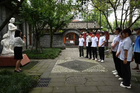 7月8日,实践团与四川大学空天科学与工程学院联合开展了国防精神研学与空天人才培养研讨活动。双方就国防精神传承、新时代空天人才培养展开深入交流,重点围绕“江姐班”红色育人模式、学风互助项目、“五育并举”综合评价体系以及“红岩精神”育人实践和大类招生/分流培养体系,探讨了新时代空天人才培养的有效路径。实践团成员还参观了四川大学江姐纪念馆及校史馆,更加深入学习了江竹筠同志的英雄事迹,感受了四川大学厚重的办学历史。