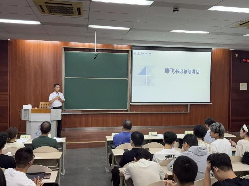 虎溪校区D1134教室举行2024级新生启航大会。学院党委书记奉飞、副院长姚建尧、学生办公室相关老师及 av01