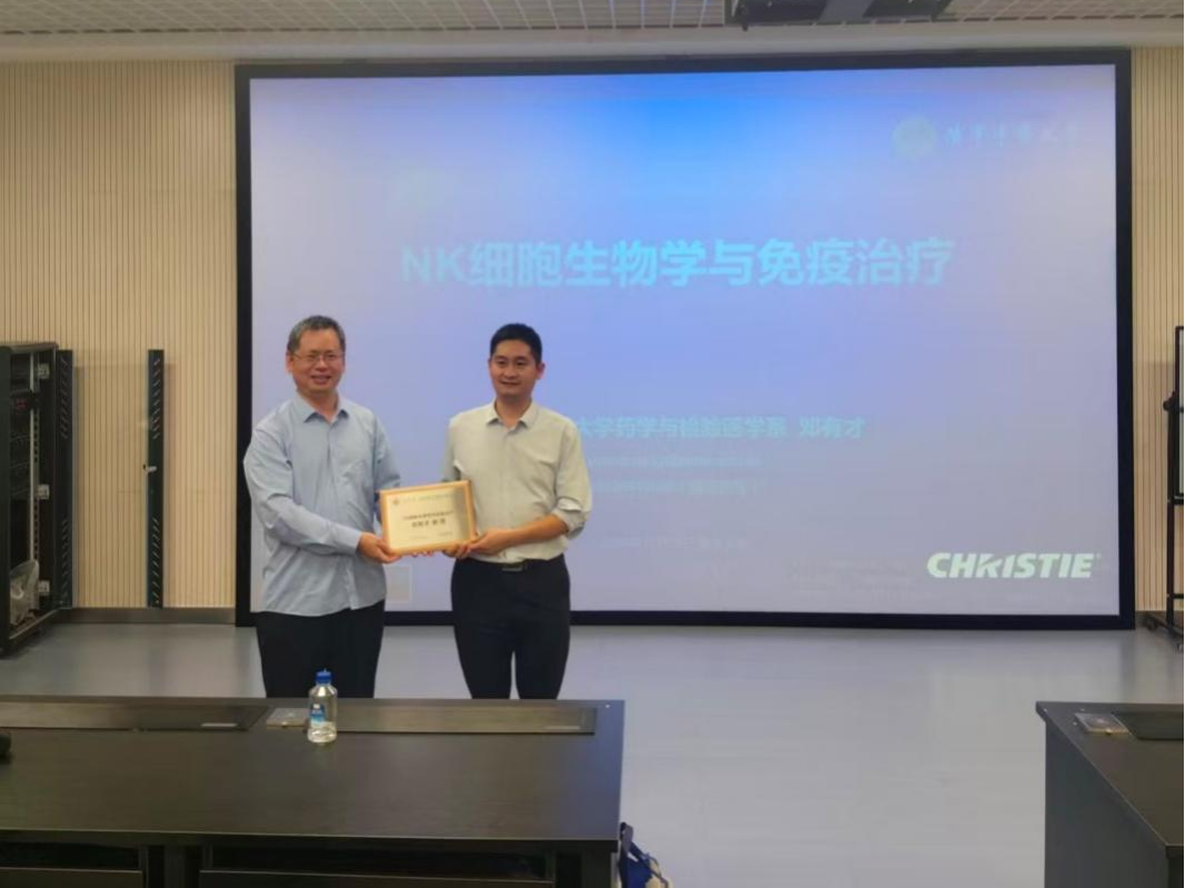邀请,陆军军医大学药学与检验医学系邓有才教授出席工程学部主办的工程科学前沿讲坛,在理科楼010会议室作了题为 “NK 细胞生物学与免疫治疗” 的学术讲座。报告由 av01