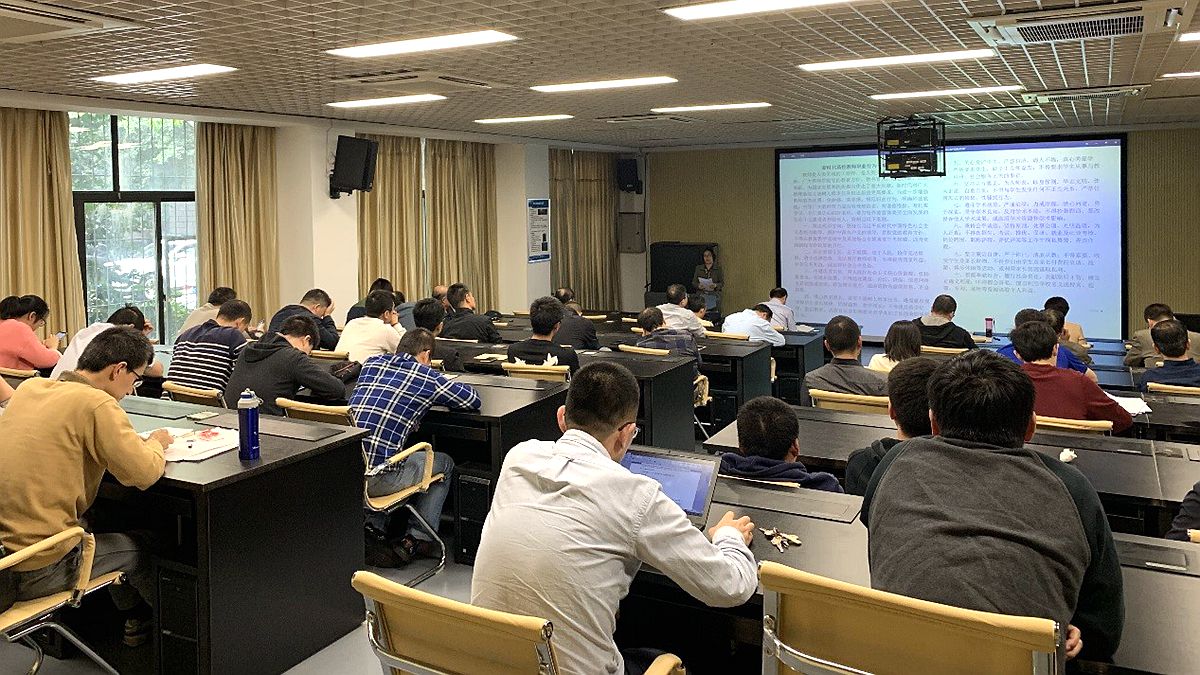 2019年5月9日下午, av01 在理科楼010召开全院教职工大会,会议由院党委书记万玲主持。