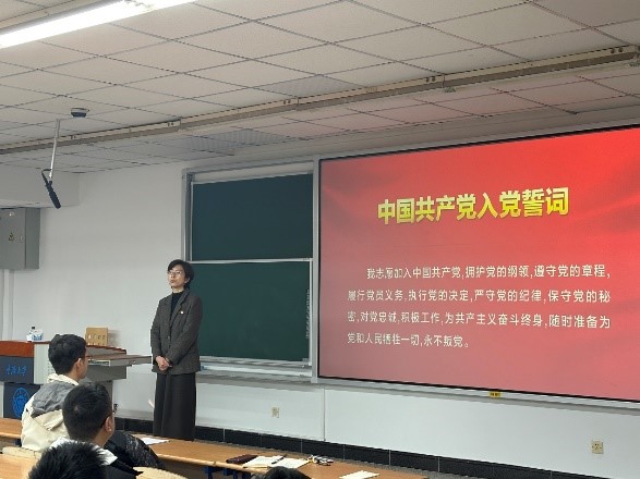 宣讲会最后,程乐带领全体参会人员重温入党誓词并对本次宣讲会进行了总结,她强调了中国共产党人精神谱系的重要性,鼓励同学们将学习成果转化为实际行动,激励同学们以更加饱满的热情发挥先锋模范作用,传承“重大精神”,在学习工作中争当模范、创先争优,以实际行动践行初心和使命,为实现中华民族伟大复兴贡献前锋力量。
