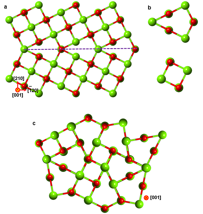 图1、一维有序晶体的原子结构示意图。MgO一维有序晶体可由MgO晶界结构单元组合而成。