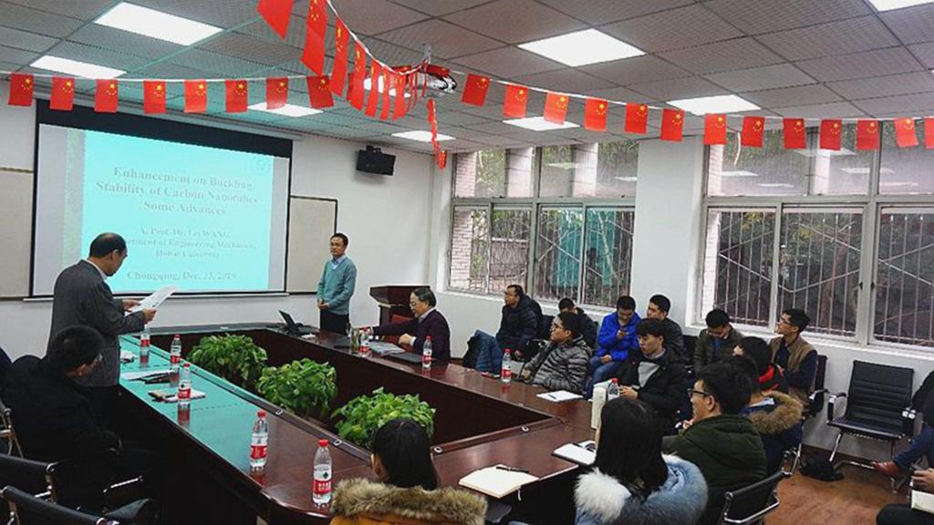 邀请,河海大学工程力学系章青教授、王磊副教授在理科楼205会议室出席由工程学部主办的工程科学前沿讲坛,章青教授作了题为“非局部近场动力学及其若干应用”、王磊副教授作了题为“Enhancement on Buckling Stability of Carbon Nanotubes --- Some Advances”的学术报告。报告由 av01
