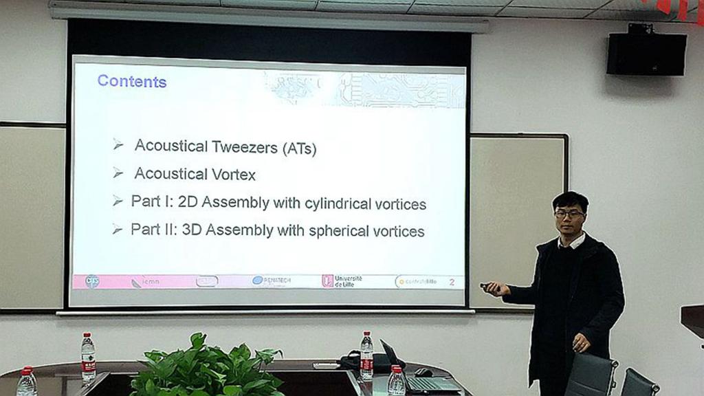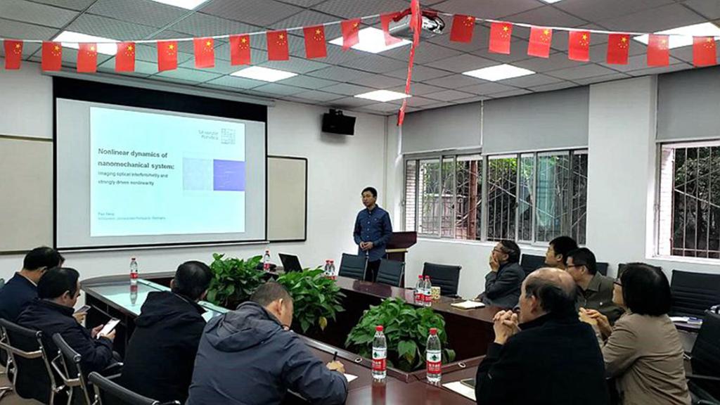 接下来,与会青年学者分别就其研究的前沿领域和热点问题作主题报告。德国康斯坦茨大学杨帆博士介绍了纳米机械系统的非线性动力学——光干涉成像和强烈激发的非线性相关问题;法国国家科学研究中心龚志雄博士就实现粒子操控的声镊技术作了汇报,通过设计和优化声源,在流体介质中辐射出适宜进行微小粒子超控的声漩涡场,进而设计出用于粒子装配的同步声镊;北京航空航天大学王海潮博士围绕航空发动机涡轮叶片冷却问题报告了最新研究进展;南京理工大学周胜兵博士的报告围绕旋转爆震燃烧的新型动力技术作了详细介绍;北京航空航天大学郭方亮博士汇报了多尺度热-力学性能建模分析、湿热老化演变机理以及低膨胀结构优化设计等研究工作; av01