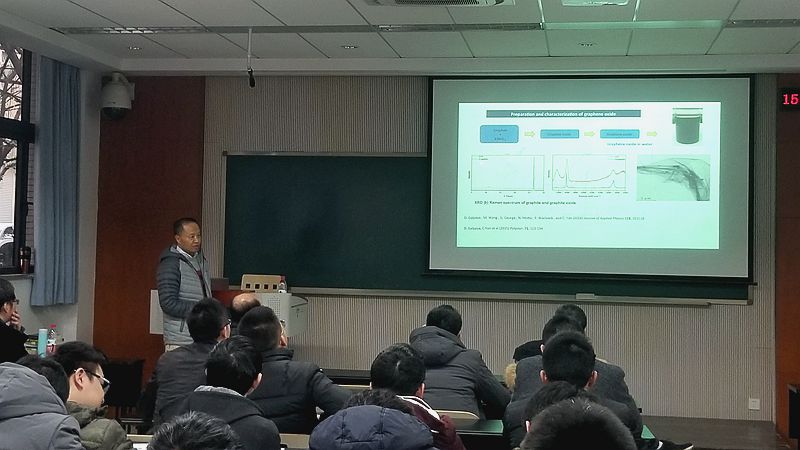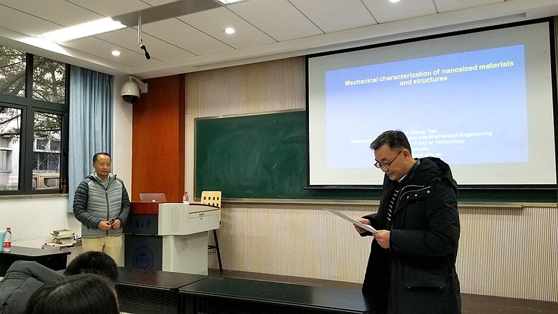 报告开始,胡宁教授首先对闫澄教授作了简要介绍。闫教授的主要研究领域包括复合材料、纳米材料、生物材料、材料性能表征及模拟。他已获得800万澳元的研究经费,包括2项澳大利亚研究理事会(ARC)研究员及11 ARC研究项目,发表国际期刊论文180。 闫教授对材料的结构性能关系,材料界面及先进复合材料进行了广泛的研究。通过广泛的国际合作,他领导的小组还对能源材料及生物材料进行了研究。随后,闫教授从纳米材料说起,并结合他目前所做的课题,详细地介绍纳米材料和结构显示出独特的性能和广阔的应用前景。闫教授从新能源开发,生物医学方面阐述纳米材料与结构的力学表征。他以锂离子电池举例:该技术以其能量密度高、寿命长等优点,越来越广泛地应用于便携式电子设备和电动汽车中。纳米材料可适用于先进的能源系统,以提高转换效率、改进存储能力和提升的可靠性,为解决全球能源需求提供新的方案。闫教授还介绍,他团队近期的工作致力于纳米碳薄膜,机械特性的建模,同时力争在有机化合物(MOF)、生物医学材料和电极材料寻求突破方向,此类研究成果将在轻质结构、微电子、能量收集和存储、生物器件和组织工程方面得到广泛应用。