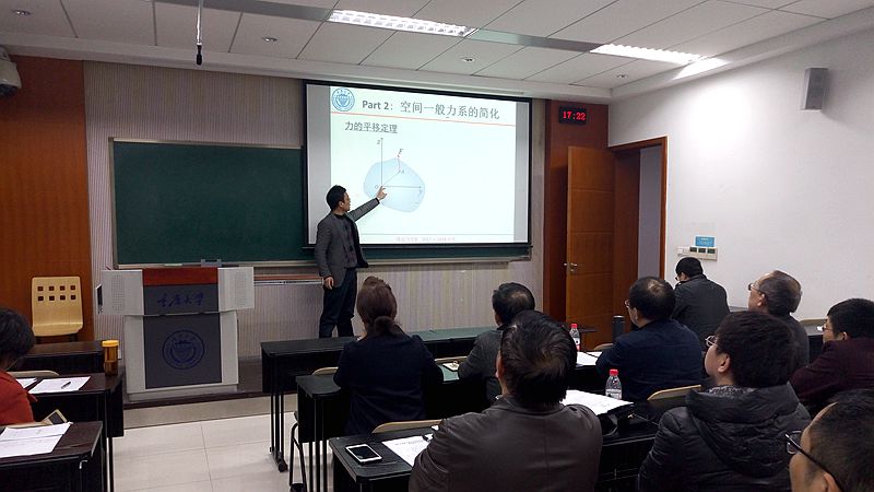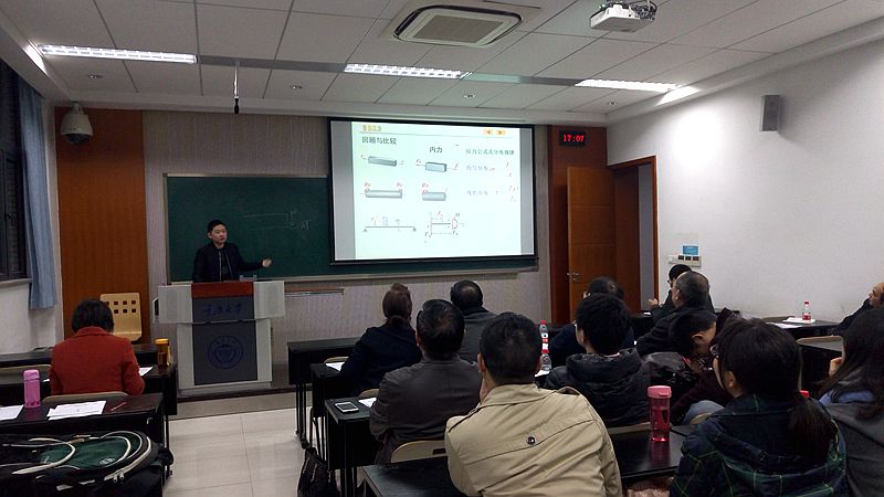 吴剑老师以“弯曲应力”的部分教学内容进行演示,通过启发式教学模式,对内容进行了详细的讲解。章俊老师讲授的内容是《空间任意力系》,从力的平移定理等方面进行讲解,过程流畅,内容丰富。刘瑶璐老师则以材料力学中的材料拉伸时的力学性能为主题,结合实例、娓娓道来。姚建尧老师讲解的课程为《飞行器结构力学》,运用PPT和板书相结合的形式,对耦合相关定理进行了阐释。