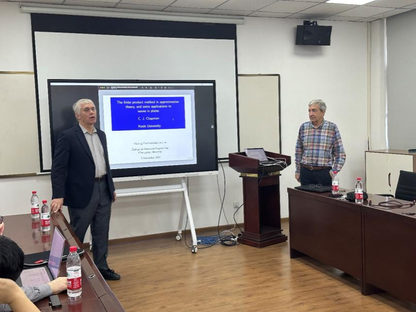 邀请,2024年11月2日下午英国阿伯里斯特威斯大学教授、英国威尔士学术院院士Gennady Mishuris,英国基尔大学教授Christopher John Chapman和青年教师Michael Nieves出席由国际合作与交流处、国际学习中心主办的全球前沿学科系列讲座(G-Seminar)。三位学者分别作了题为:“Six Stress Intensity Factors: how hydraulic Fracture pays back to Fracture Mechanics?”、“The finite product method in approximation theory and some applications to waves in plates”和“Asymptotic treatment of non-periodic multi-scale solids and structures”的精彩报告。讲座由学院弘深杰出学者Fedor Borodich教授与金晓清教授主持,30余名师生代表参加。