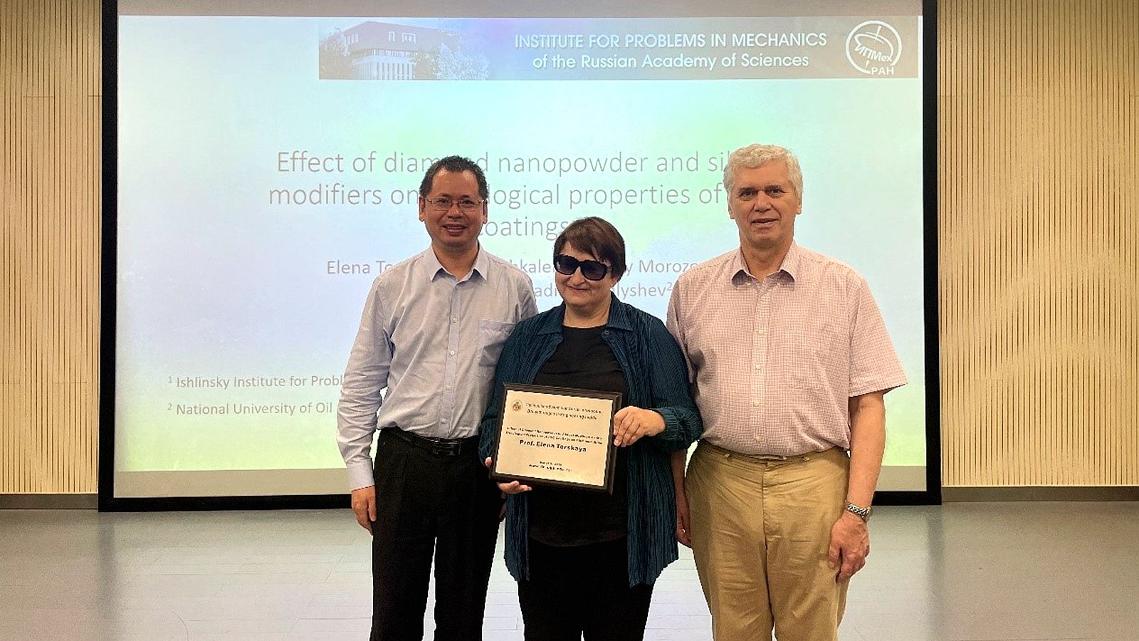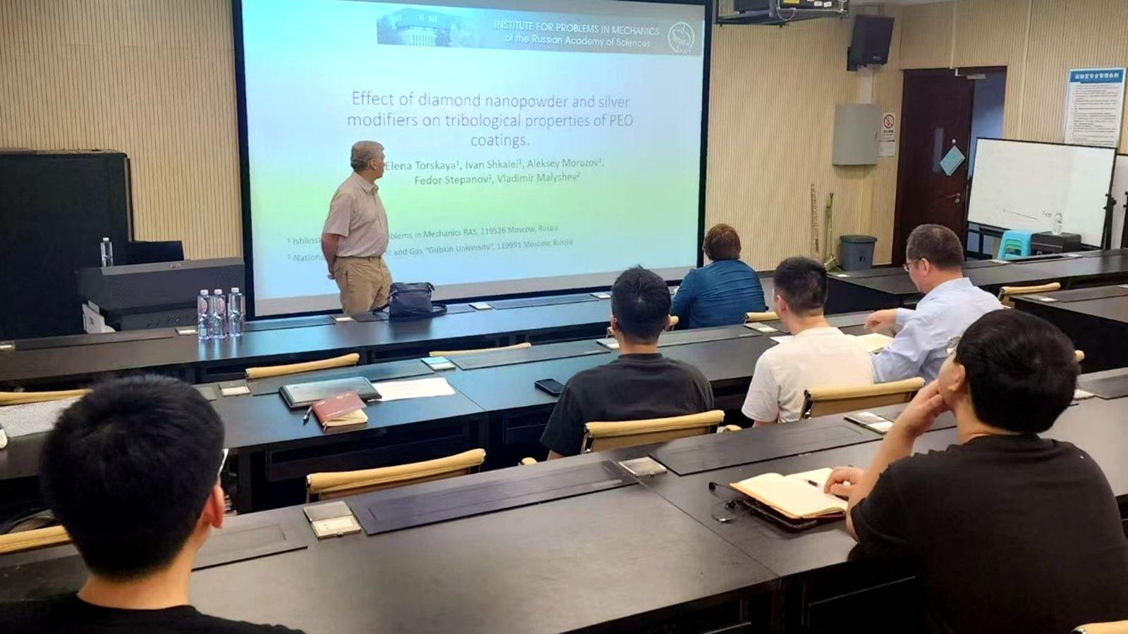 2024年5月21日9:30,应 av01 邀请,俄罗斯科学院Ishlinsky力学研究所摩擦学实验室Elena Torskaya教授在理科楼010出席由工程学部主办的工程科学前沿讲坛,并作了题为“Effect of diamond nanopowder and silver modifiers on the tribological properties of PEO coatings on aluminum alloy”的专题报告。报告由 av01 弘深杰出学者Feodor Borodich教授和学术骨干金晓清教授主持,青年教师代表及工程学部师生30余人出席听讲。