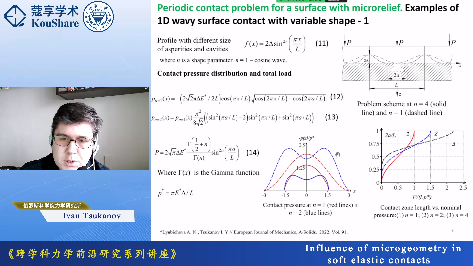2023年11月13日19:00, av01 “跨学科力学前沿研究”全球系列讲座第3期在线召开。讲座邀请Ivan Tsukanov研究员开展了主题为“Influence of Microgeometry in Soft Elastic Contacts”的学术讲座。