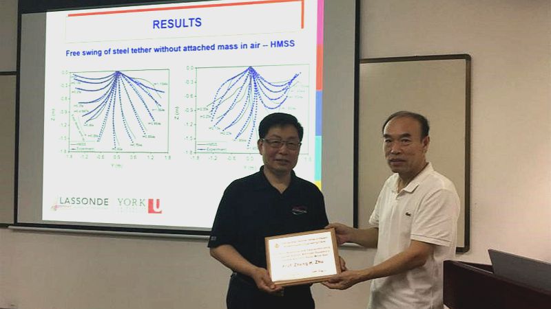 胡宁教授首先介绍了朱正宏教授的研究简历。朱正宏教授本、硕、博均毕业于上海交通大学力学专业,并获得加拿大滑铁卢大学机器人控制专业硕士学位及加拿大多伦多大学机械工程专业博士学位。目前任加拿大约克大学机械工程学院的department chair教授。他同时是加拿大工程研究院院士、美国机械工程师协会(ASME)Fellow、中国机械工程协会(CSME)Fellow、美国飞机工业协会(AIAA)associate Fellow。作为负责人主持了多项加拿大国家科学工程研究基金(NSERC)、加拿大航天署(Canadian Space Agency)等项目20余项。目前,他作为负责人正在主持由加拿大航天署资助的“立方星电动系绳离轨空间演示”项目,计划于2018年底发射两颗由100米长的电动系绳连接的立方星,在空间演示电动系绳离轨技术。