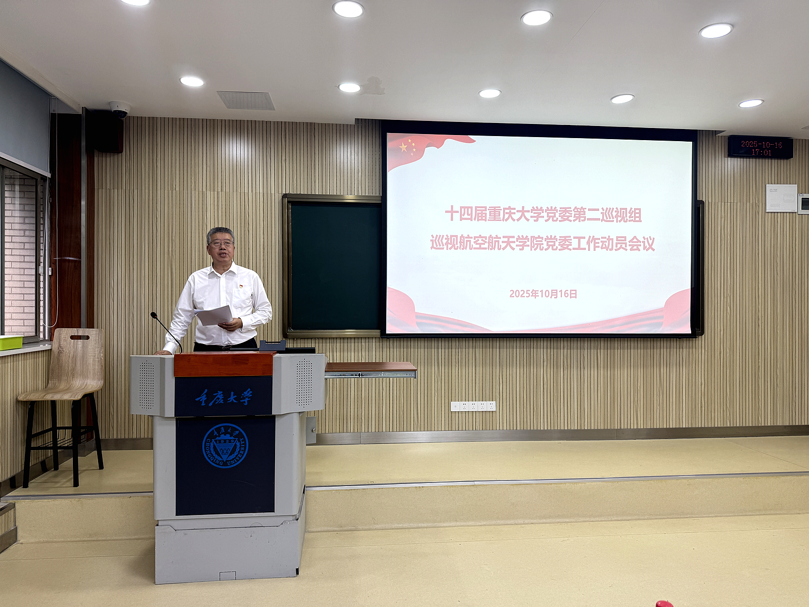 2025年10月16日下午,十四届学校党委第二巡视组巡视 av01 党委工作动员会在研究生院202室召开。校党委副书记、纪委书记、巡视工作领导小组副组长陶举虎出席并讲话。 av01 党委书记奉飞主持会议并作表态发言。